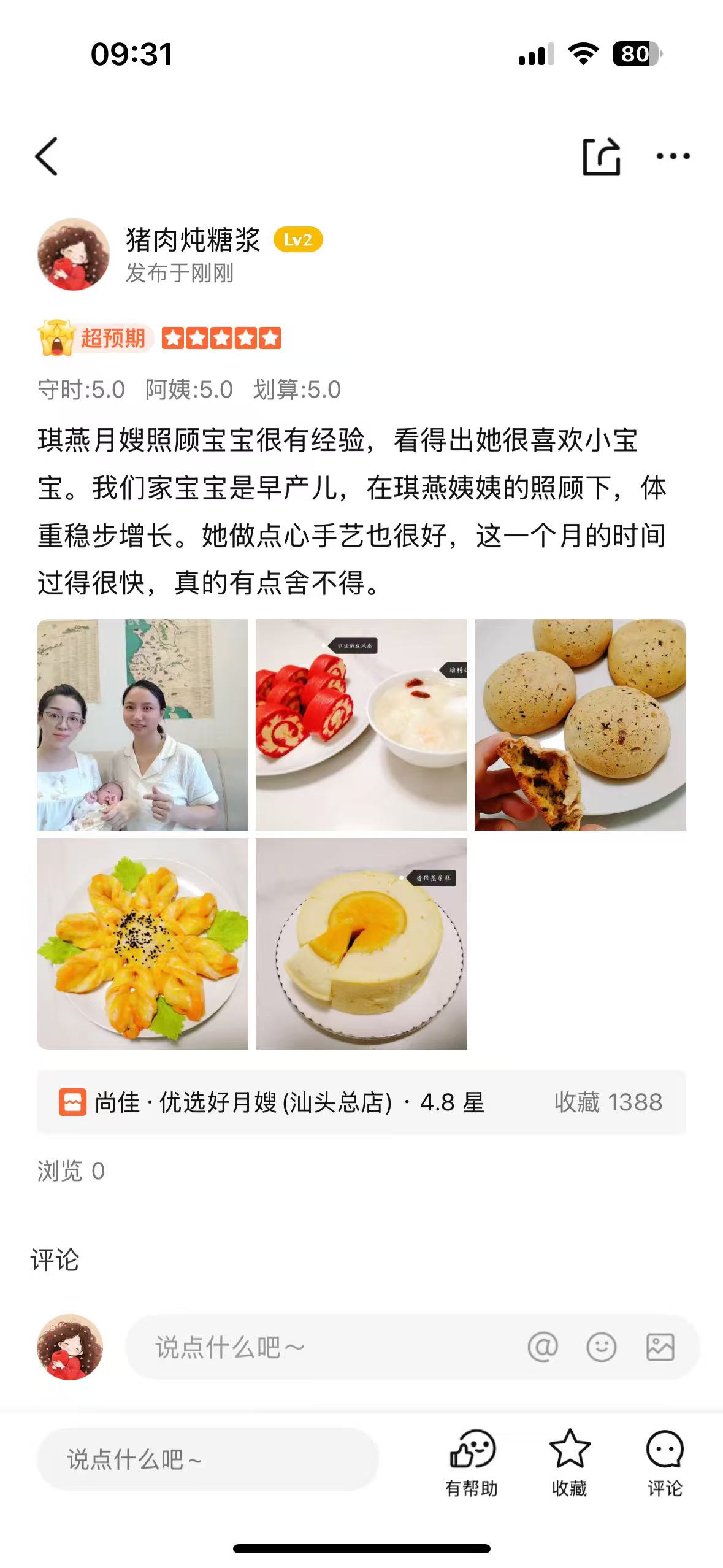 燕姐來自湖南常德,在潮汕從事月嫂已有多年的經驗,燕姐做事很細心,對寶寶和寶媽的護理都很仔細,性格溫柔,溝通力很強,在工作期間對待寶寶就像對待自己的孩子一樣,她對寶媽也是悉心照料,還會時常開導寶媽,客戶都很喜歡她。